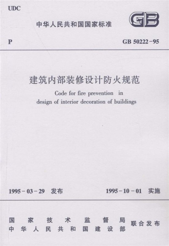 Code for fire prevention in design of interior decoration of buildings
