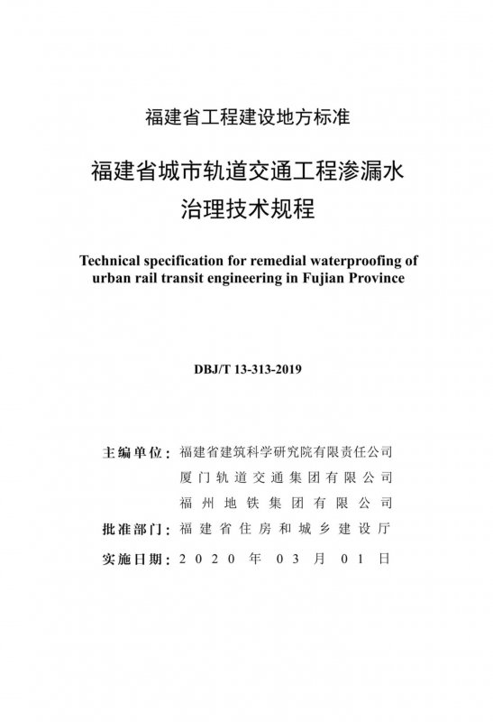 厦门市建设工程质量安全监督站;福州市地铁建设工程质量安全监督站;福建信合土建工程咨询有限责任公司;福建省建筑工程质量检测中心有限公司;中铁海峡建设集团有限公司;福建省建科工程技术有限公司;广州地铁设计研究院有限公司;厦门防水博士建筑工程有限公司;中交二航局成都城市建设工程有限公司;中交第二公路工程局有限公司;中铁十二局集团第二工程有限公司;中铁上海工程局集团第二工程有限公司;中科院广州化灌工程有限公司;厦门博仕泰建筑材料有限公司;福建舒适空间防水技术有限责任公司;福建中意铁科新型材料有限公司;福建海特化工建材实业有限公司;南京康泰建筑灌浆科技有限公司