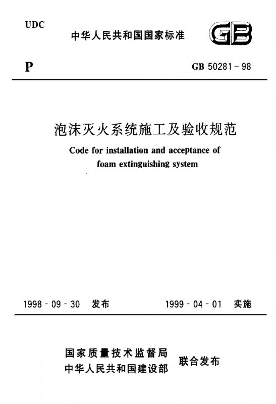 关于发布国家标准《泡沫灭火系统施工及验收规范》的通知
