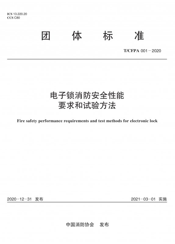 电子锁消防安全性能要求和试验方法