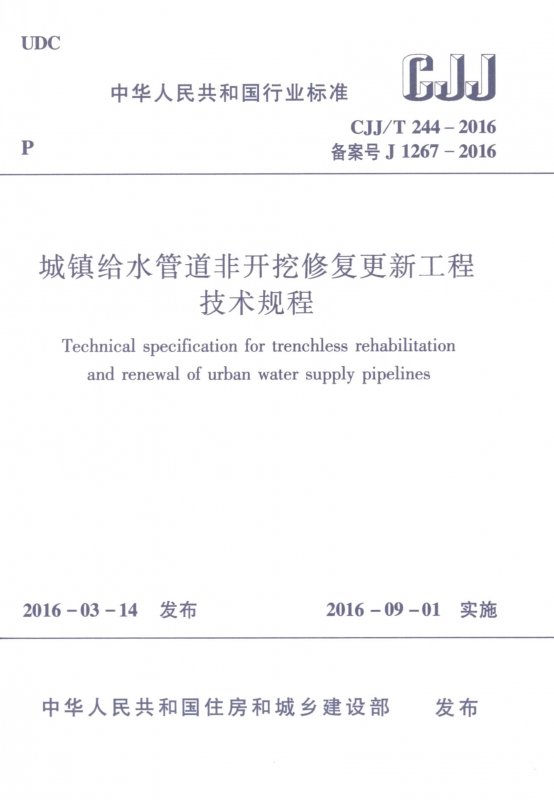 中国地质大学(武汉);北京市自来水集团有限责任公司;上海城投水务(集团)有限公司;哈尔滨工业大学;上海市政工程设计研究总院(集团)有限公司;城市水资源开发利用(南方)国家工程研究中心;上海上水自来水特种工程有限公司;上海普测管线技术工程有限公司;河南中拓石油工程技术股份有限公司;天津华水自来水建设有限公司;山东柯林瑞尔管道工程有限公司;河北肃安实业集团有限公司;保定市金迪双维管道内衬技术有限公司;北京隆科兴非开挖工程有限公司