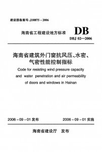 适用范围:本标准适用于在海南省范围内,采用铝合金和PVC塑料建筑型材制作安装的工业与民用建筑普通外门窗产品的设计及工程检验。