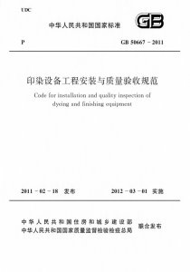 适用范围:本规范适用于新建、改建和扩建的棉、化纤和混纺等织物印染设备工程的安装与质量验收。本规范不适用于印染设备用户为自用而自制的非标印染设备工程的安装与质量验收。