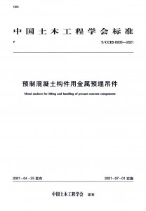 适用范围:本标准适用于预制混凝土构件在脱模、运输和吊装过程中使用的与吊索相连的金属预埋吊件。