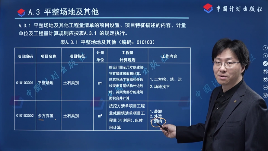 来 源:GB/T 50854-2024 房屋建筑与装饰工程工程量计算标准 > 附录A 土石方工程 > A.3 平整场地及其他