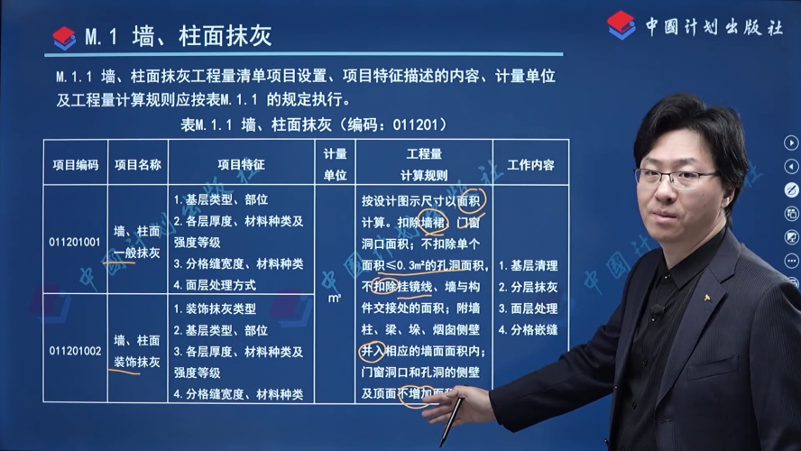 来 源:GB/T 50854-2024 房屋建筑与装饰工程工程量计算标准 > 附录M 墙、柱面装饰与隔断、幕墙工程 > M.1 墙、柱面抹灰