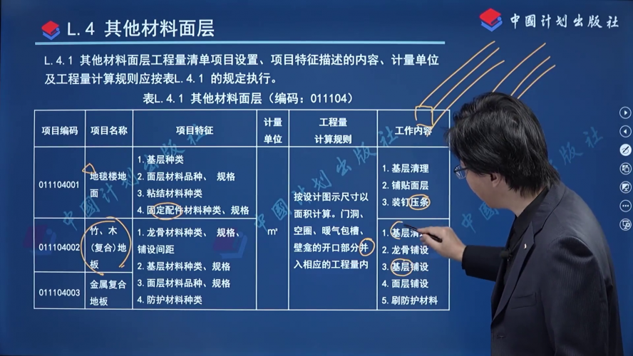 来 源:GB/T 50854-2024 房屋建筑与装饰工程工程量计算标准 > 附录L 楼地面装饰工程 > L.4 其他材料面层