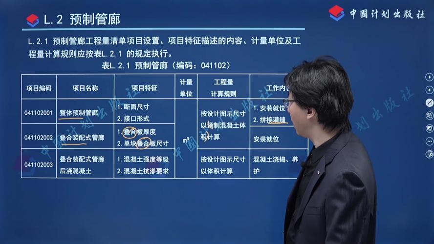 来 源:GB/T 50857-2024 市政工程工程量计算标准 > 附录L 城市地下综合管廊工程 > L.2 预制管廊