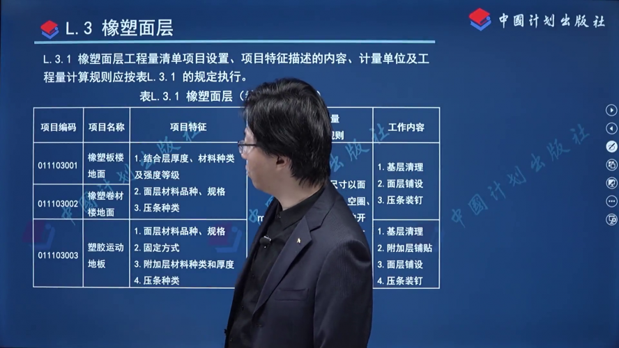 来 源:GB/T 50854-2024 房屋建筑与装饰工程工程量计算标准 > 附录L 楼地面装饰工程 > L.3 橡塑面层