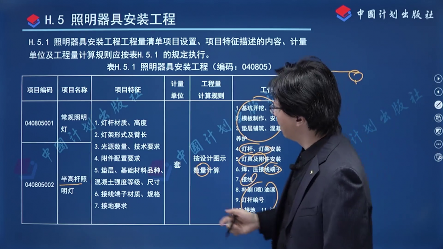 来 源:GB/T 50857-2024 市政工程工程量计算标准 > 附录H 路灯工程 > H.5 照明器具安装工程